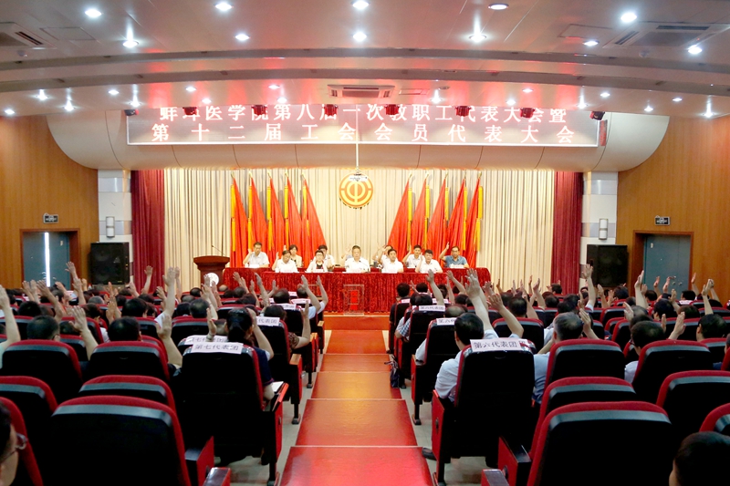 承先启后开阔步,砥砺奋进续华章。在全校上下深入学习贯彻党的十九大精神和校第八次党代会精神之际,2019年6月29日上午,蚌埠医学院八届一次教代会暨十二届工代会在学术报告厅胜利开幕。162名代表肩负使命,齐聚一堂,共谋发展。省总工会副主席、党组成员阮怀楼,省教科文卫体工会调研员唐成,校领导高怀荃、王俊和、张武丽、杨烨、陈昌杰,学校部分老领导出席会议。