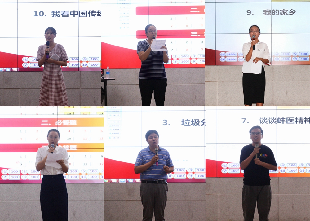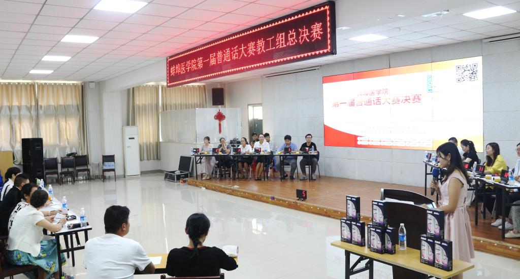 决赛共三轮比拼。第一轮为“自备作品”和“即兴说话”两部分。“自备作品”不仅反映出选手的普通话水平,还透露着选手的个人爱好与修养,是有声语言作品的集中展示;“即兴说话”由选手现场选择说话题主题词,并在规定时间内完成话题评述,考察的是选手的逻辑思维、语言组织能力和随机应变能力,“我和我的祖国、”“蚌医升大学我能做什么”、“师德和我”、“我理解的幸福”、“垃圾分类和我们”等说话主题词充满了正能量和时代感。选手们现场快速构思、快递组织语言的能力和沉着冷静的表达,不仅展示了选手们较高的普通话水平,更展现出我校教职工较高的综合素质,引起现场观众的共鸣。