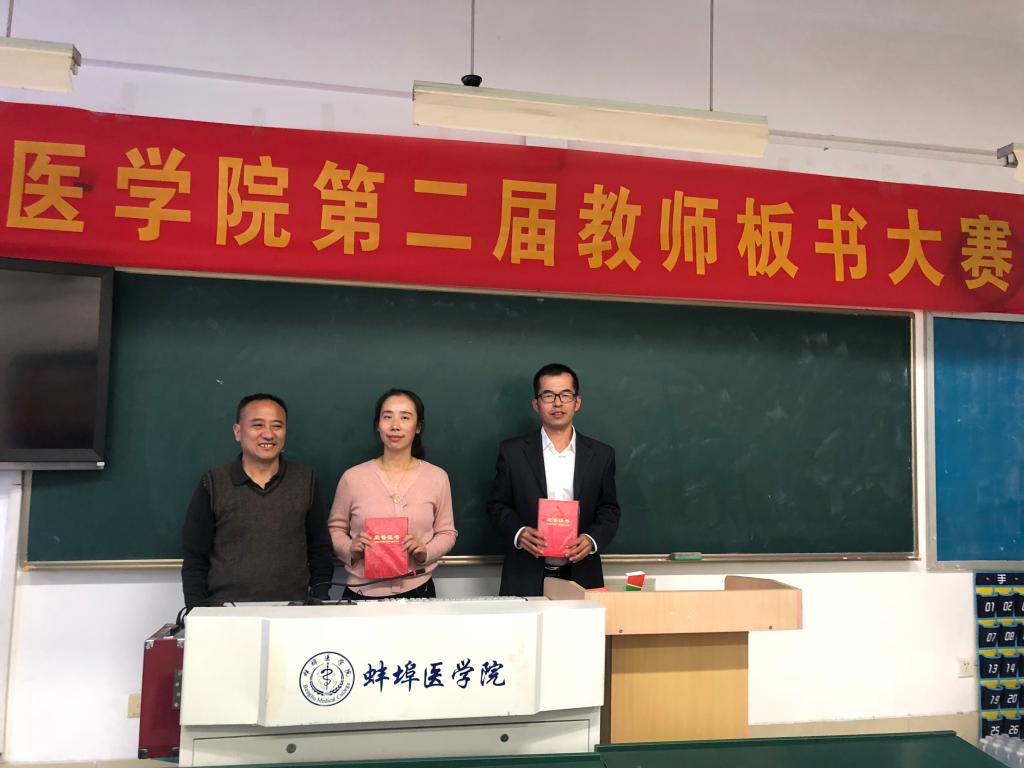 我校卓越教师发展中心专家委员会成员及第一届教师板书大赛获奖选手等担任评委。经评委现场打分,最终基础医学院工会刘冬播和公共基础学院工会吴娜以相同的比分获一等奖,药学院公共卫生学院工会王皓天、杨晶获二等奖,检验医学院工会彭怡然,临床医学院马克思主义学院工会李林、吴雪龙,医学影像学院卫生管理学院工会倪娜和体育艺术部工会连俊杰获三等奖。评委为选手颁奖,校卓越教师发展中心专家委员会成员王震寰、许华山做了精彩点评。