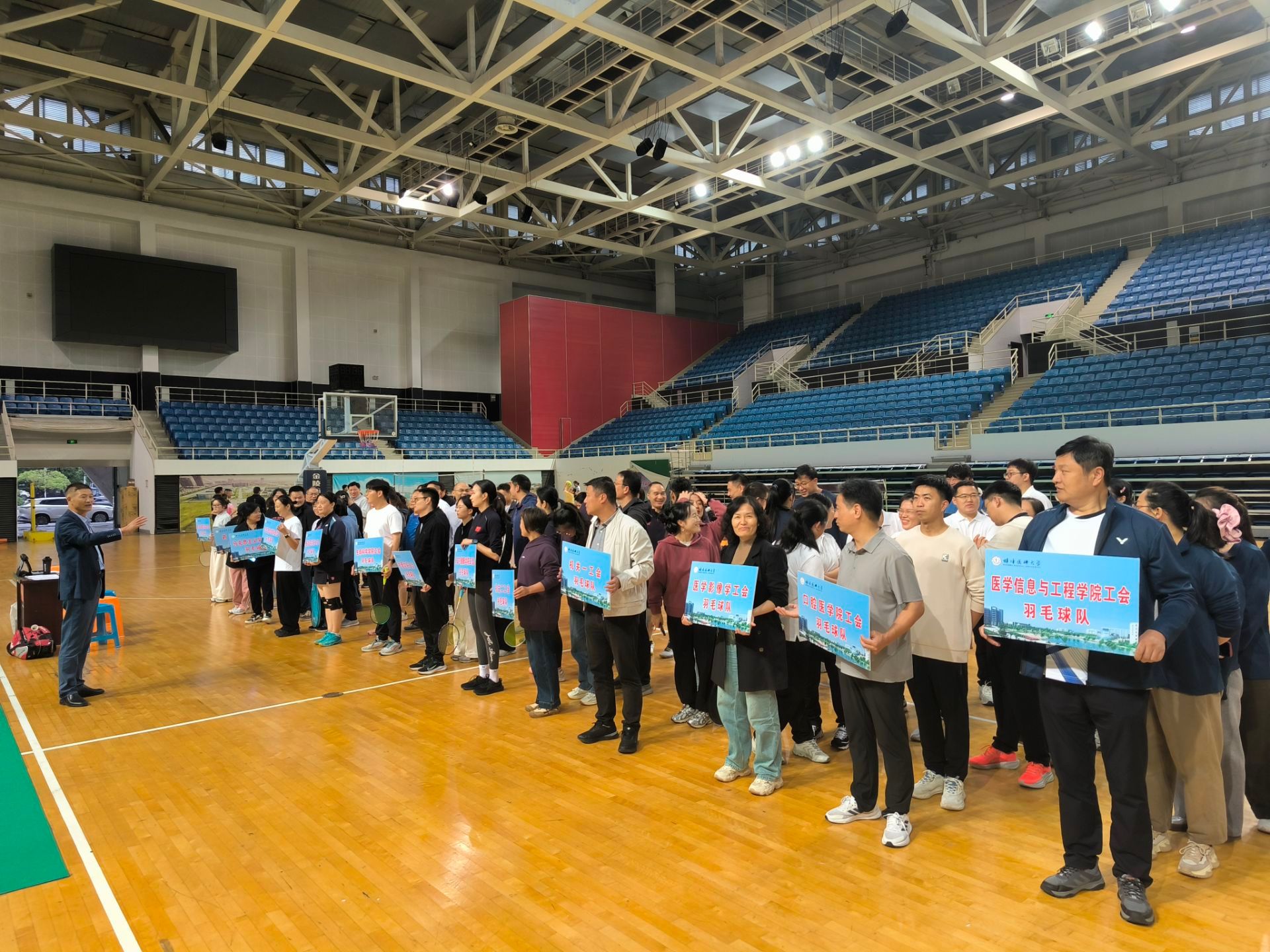 10月15日,由校工会、人文与健康学院共同主办的以“永远跟党走 奋进新征程”为主题的秋季职工文体月羽毛球团体赛在学校龙湖体育馆圆满落下帷幕。来自全校各单位的14支代表队,百余名教职工运动员齐聚赛场,以球会友,共展蚌医人昂扬向上的精神风貌。