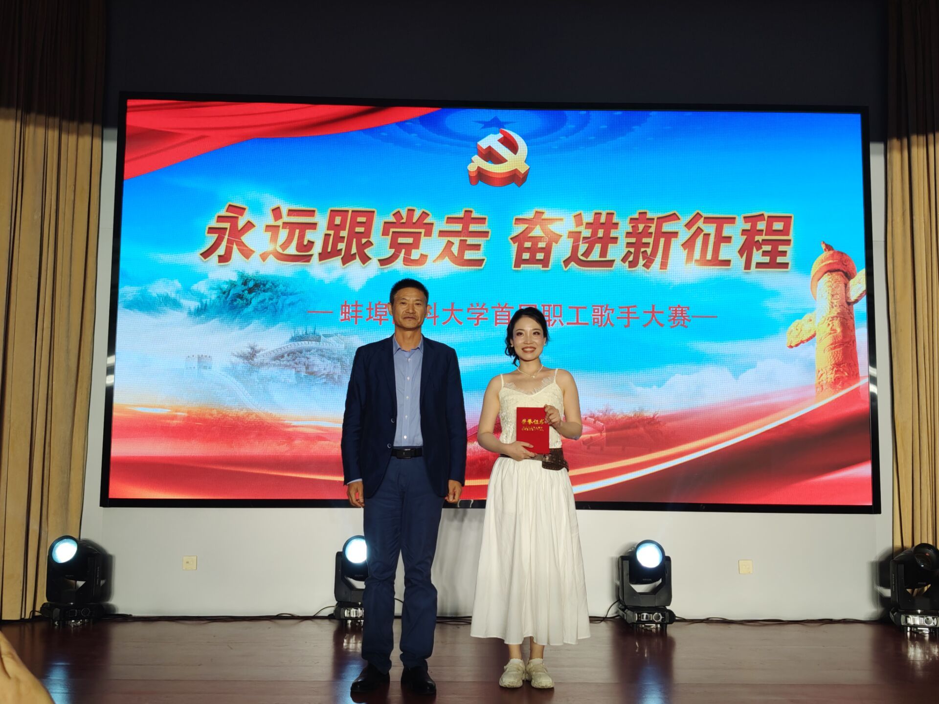 舞台上,选手们或深情款款,或激情澎湃,用专业的演唱技巧与真挚的情感表达,赢得台下阵阵掌声与喝彩。由蚌埠市音乐家协会主席赵义堃,副主席叶培结、王秋华、房鹏宇、蚌埠学院音乐与舞蹈学院院长张永芳等5人组成的专家评审团从歌曲演绎、情感表达、舞台表现等维度进行专业打分。赵义堃做了专业点评,并应邀演唱了意大利名曲《我的太阳》。最终,第一附属医院华云燕获一等奖,第一附属医院章宁宁、第二附属医院邓鑫获二等奖,基础医学院刘冬播、第一附属医院解雨辰、口腔医学院曹安迪获三等奖,其余选手获优胜奖。